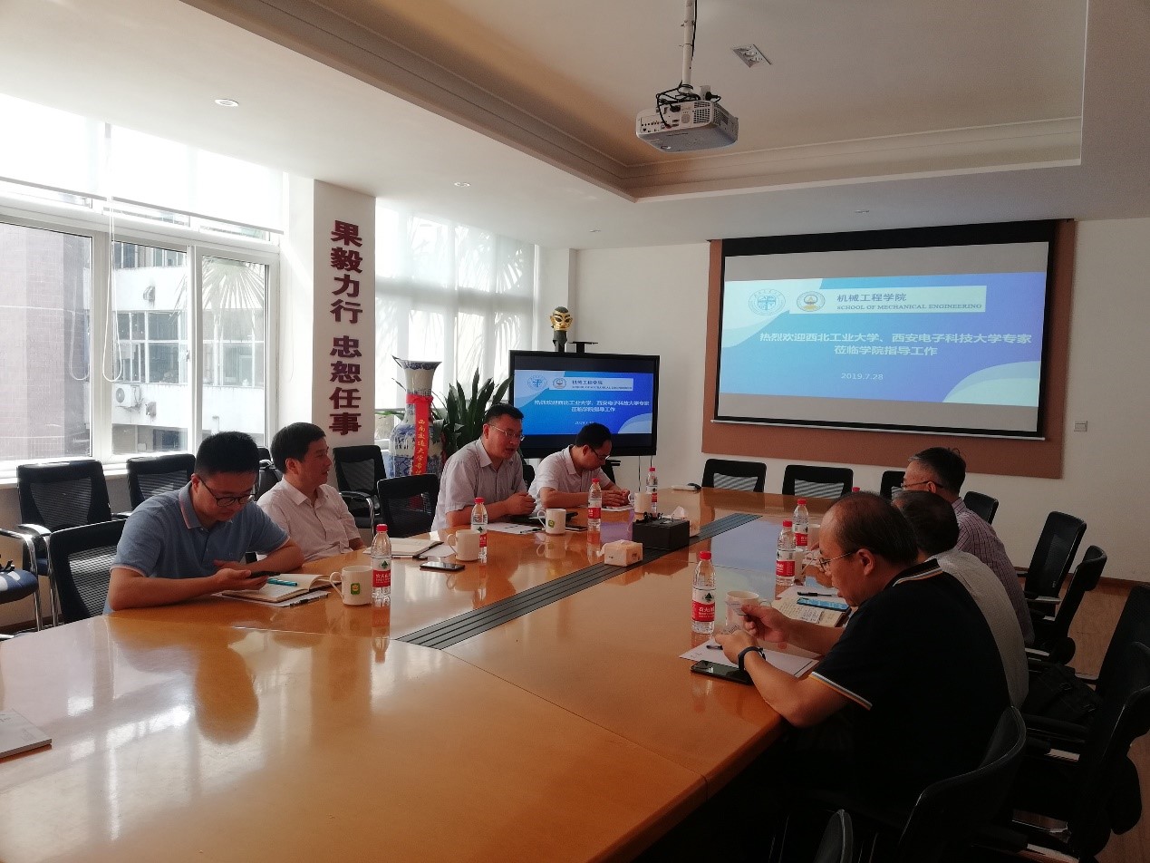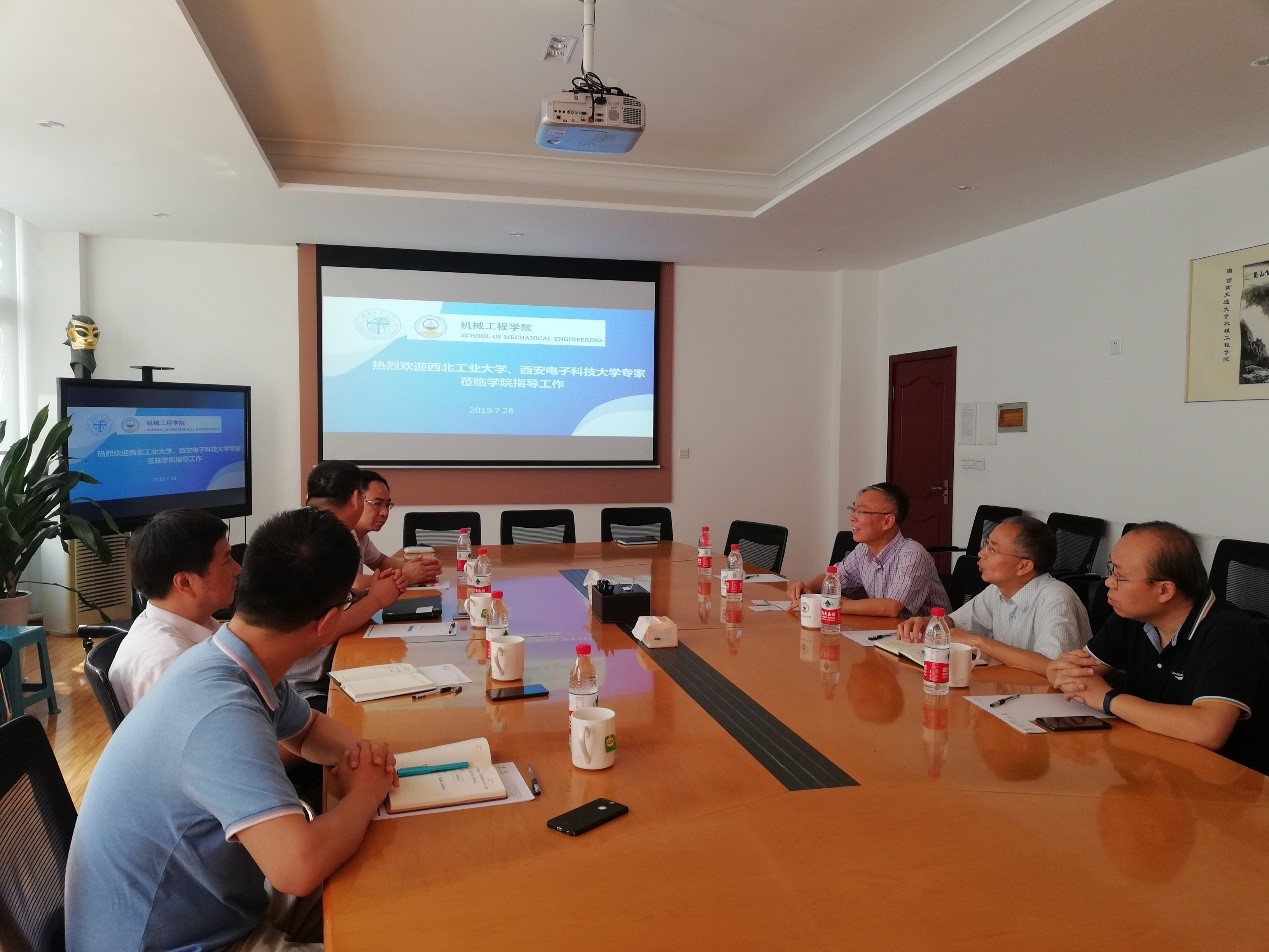 2019年7月28日上午9点30分,学院在九里校区2206会议室举行教指委调研座谈会,热烈欢迎教指委员西北工业大学马炳和教授、机电学院蒋建军副院长、西安电子科技大学朱敏波教授和胡乃刚老师一行人到来。马炳和教授一行受教育部机械类专业教学指导委员会副主任委员段宝岩院士委托,前来学院进行新工科专业建设调研。学院党委书记董大伟、副院长田怀文、教研室主任及教工委副主任罗大兵参加调研座谈会。座谈会由副院长田怀文主持。